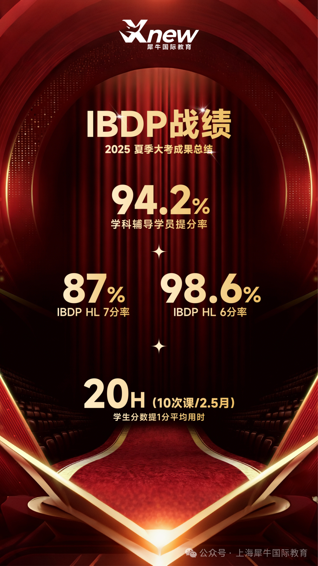 上海犀牛凭借完善的课程和出色的教学成果,犀牛教育得到了福山路周边国际生和家长的认可。2025年夏季大考中,犀牛IGCSE学员提分率达99.4%,CIE IG A*率61%,爱德思IG 9分率39%,很多学员靠着优异的IGCSE数学成绩,顺利进入了理想的国际高中。