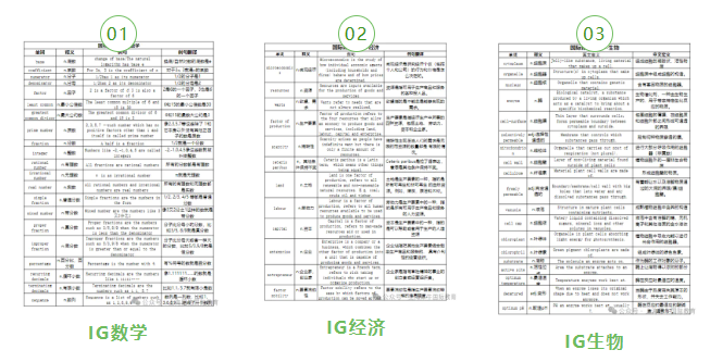对于像IG数学,IG物理,IG化学,IG生物等学科词汇,趁着暑期提前背。我们给大家整理了IG各学科词汇表,家长和同学们可以联系网站客服领取。