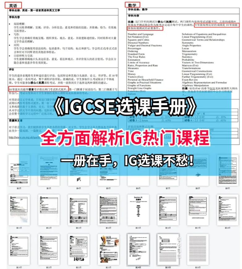 我们给大家整理了一份IG选科手册PDF版,帮助学生和家长选择IG科目。欢迎家长联系网站客服领取。