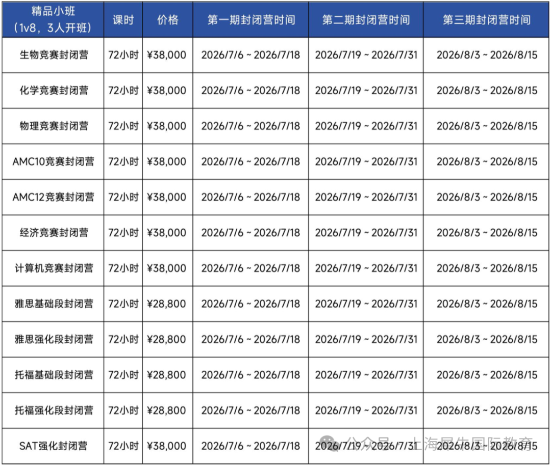 三期封闭营,覆盖整个暑假(任意选择)