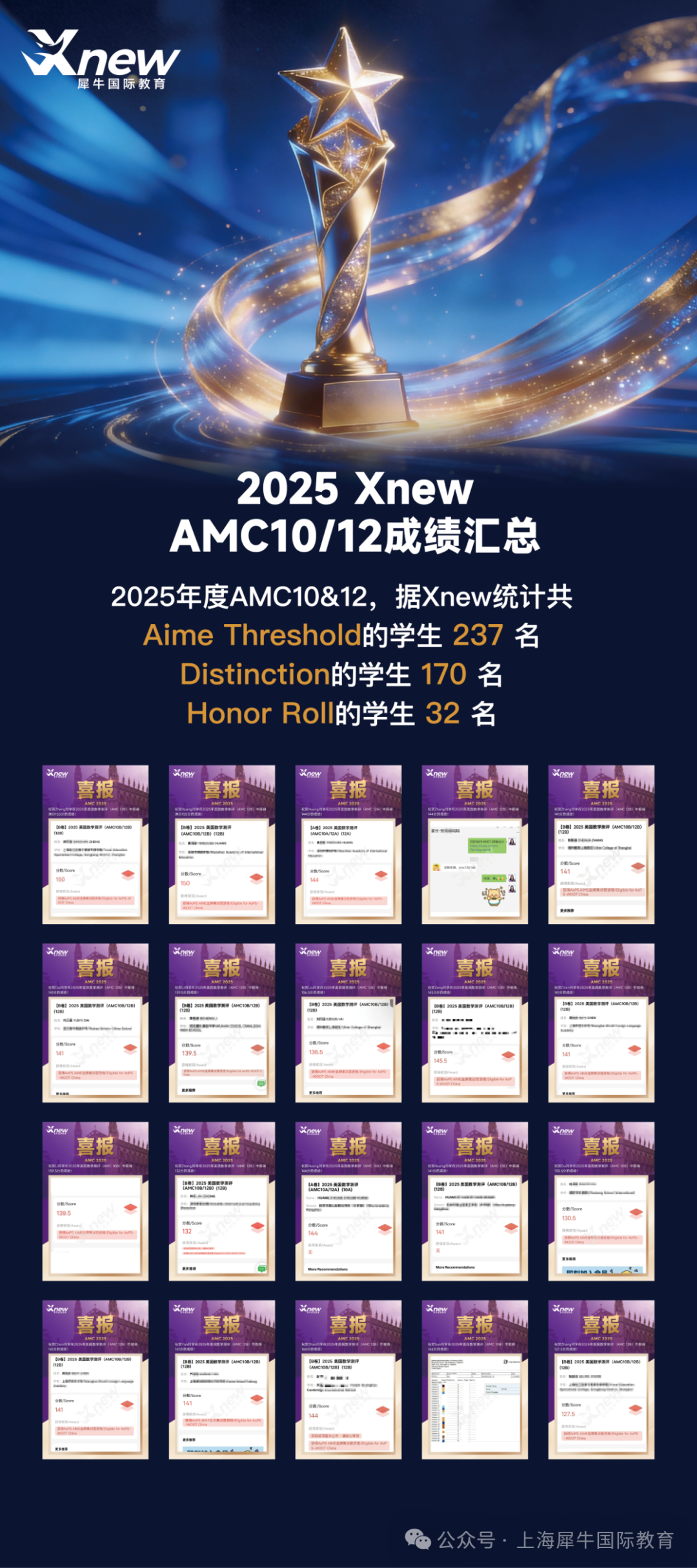 犀牛教育作为AMC竞赛培训的头部机构,历年战绩辉煌、获奖率与晋级率均处于行业顶尖水平,整体获奖率超90%。