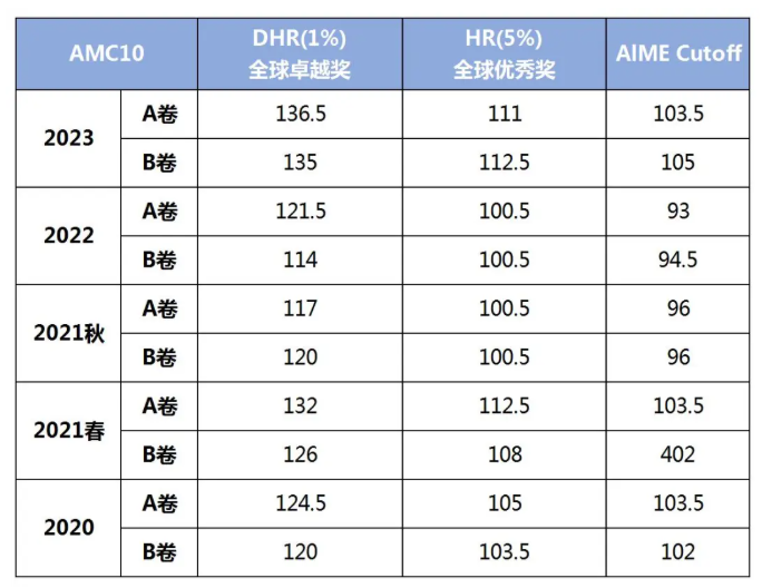 2020-2023年AMC10分数线