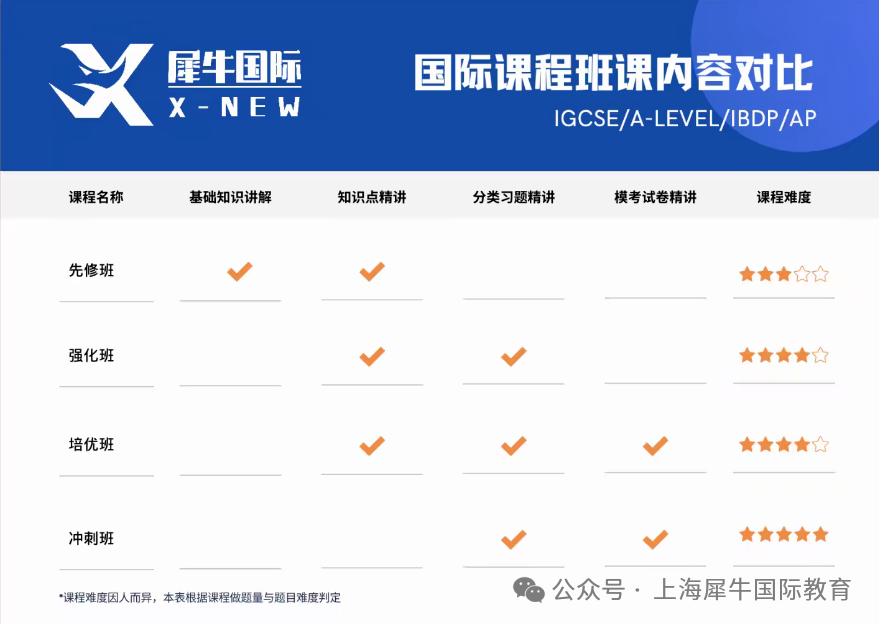除过IGCSE生物,犀牛还开设IGCSE数学、进阶数学、英语、物理、化学、生物、经济、计算机、心理学、中文等科目的辅导,适配CIE、爱德思、AQA主流考试局考纲,帮助学员顺利通关IGCSE大考。