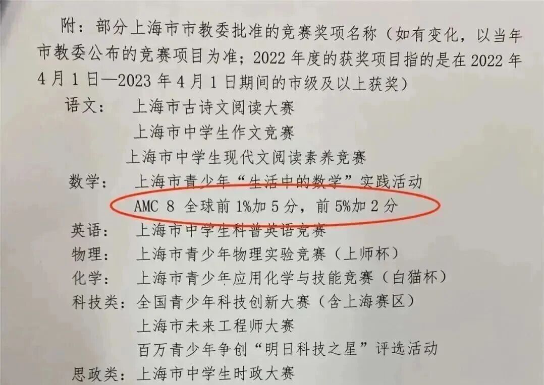 上海三公、北京六小强、苏州伟长等名校在小升初申请上会看学生是否有AMC8竞赛成绩。虽然并没有明确说明必须要有AMC8的成绩,但是从这些学校往年的录取简历来看,AMC8无疑是必备成绩证书!