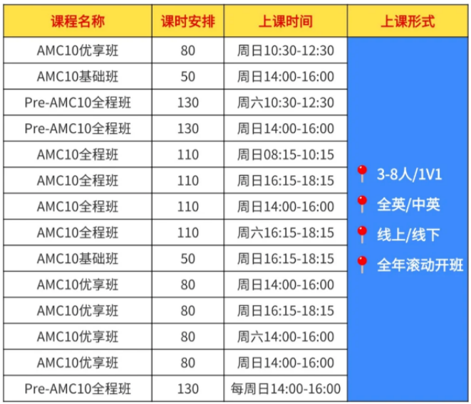 AMC10冲刺班:适合考前2-3个月,需要查漏补缺、提升答题技巧的学生