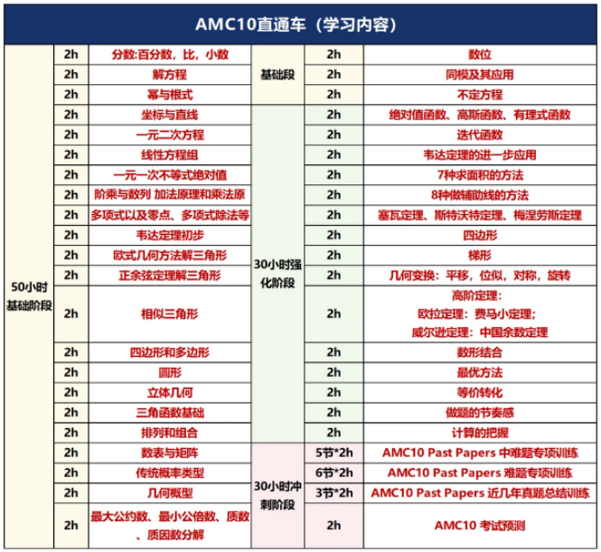 AMC10基础班:适合首次参加AMC10竞赛,数学基础一般,需要系统梳理竞赛知识点的学生。