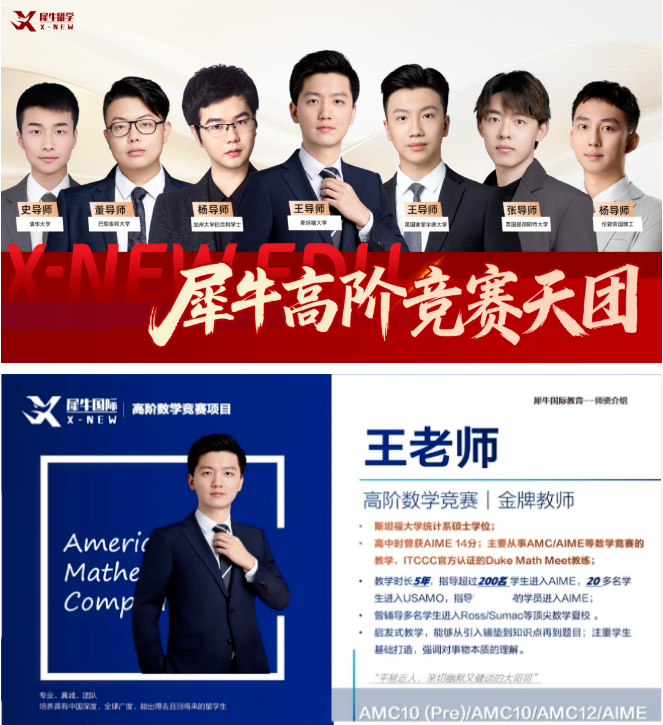 犀牛老师均来自海内外名校,清北复交、斯坦福、伦敦大学等,教学经验丰富。老师们熟知国际竞赛命题规律,AMC10考察重难点,实时追踪学生掌握程度,以及学习节奏调控。