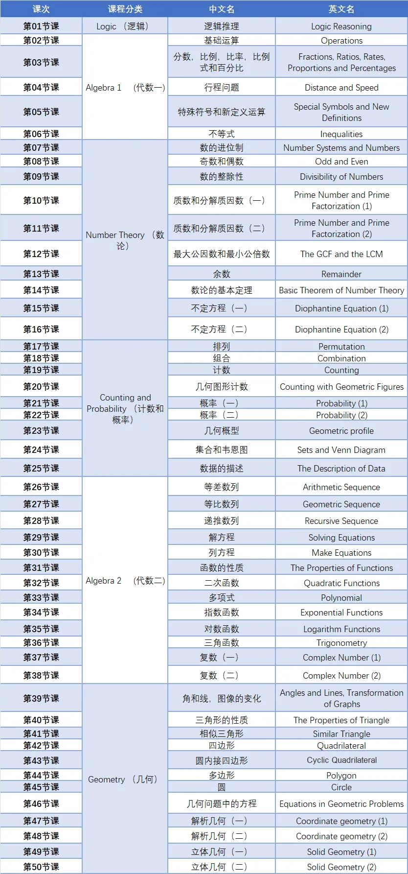 犀牛AMC12竞赛全程班教学大纲覆盖基础、强化、冲刺三阶段。