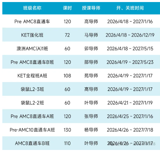 数学竞赛:袋鼠数学竞赛、AMC8、AMC10、AMC12、AIME、欧几里得竞赛等,提供基础班、强化班、冲刺班、全程班等多种班型。