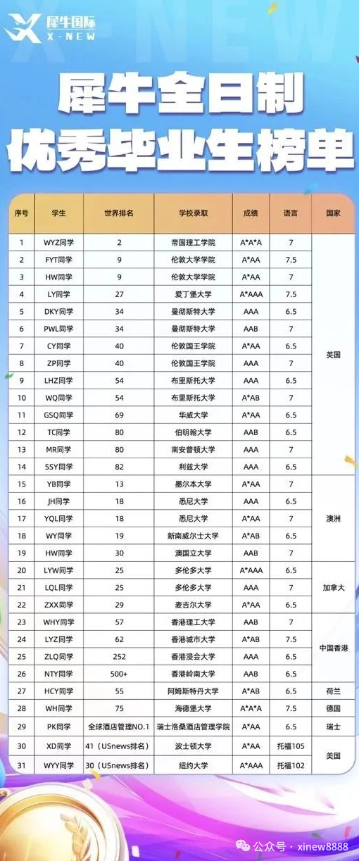 犀牛的ALevel脱产全日制申请结果显著,历年学员申请结果非常出彩!犀牛拥有着多个成功的经验,可以帮助学生逆风翻盘,斩获名校offer!
