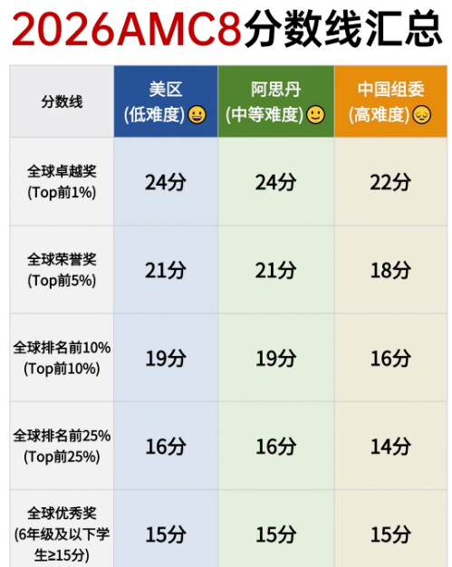 2026年AMC8 分数线(美区/阿思丹/中国组委会)