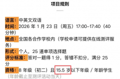 参赛对象:8年级或以下,且年龄不超过14.5岁
