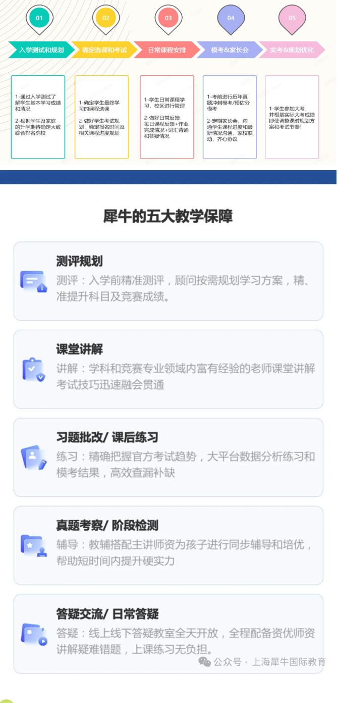 苏州犀牛根据不同基础和目标的学员开设IGCSE预习先修、同步培优、强化冲刺、全程班多种班课,针对性提分。避免“一刀切”的教学模式。