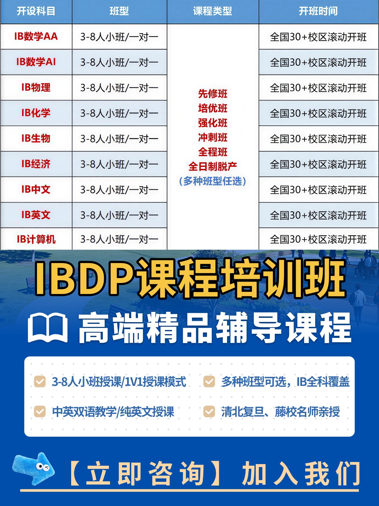 在竞争日益激烈的国际教育环境中,IBDP课程作为全球公认的高含金量国际课程,其成绩在留学申请中起着至关重要的作用。想要在众多申请者中脱颖而出,取得优异的IB成绩迫在眉睫!而我们的IBDP高端培训辅导班,就是你实现高分梦想的绝佳助力!