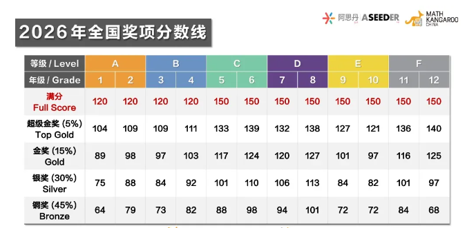 2026年袋鼠数学竞赛分数线公布,levelA级别分数线下降