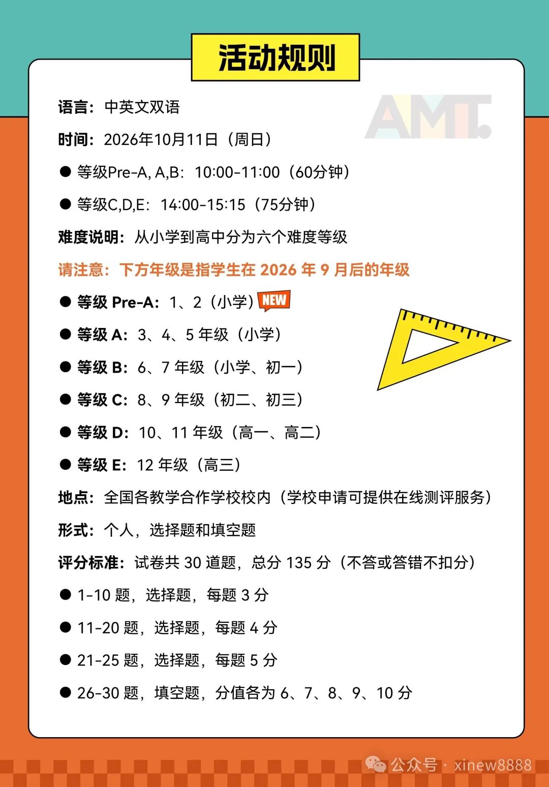 澳洲AMC通常在每年9月举行考试,2026年澳洲AMC竞赛时间调整到10月了: